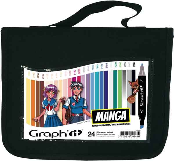 Recherchez des kits de manga comprenant une variété de marqueurs aux couleurs adaptées au manga, des crayons de qualité et des accessoires tels que des règles spécifiques.